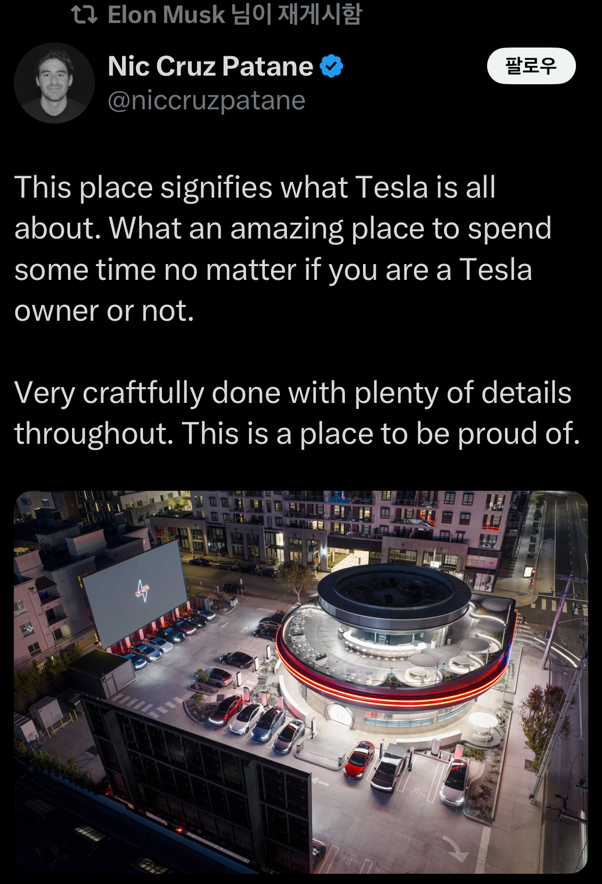 이 식당은 테슬라 오너만을 위한 공간이 아닙니다.