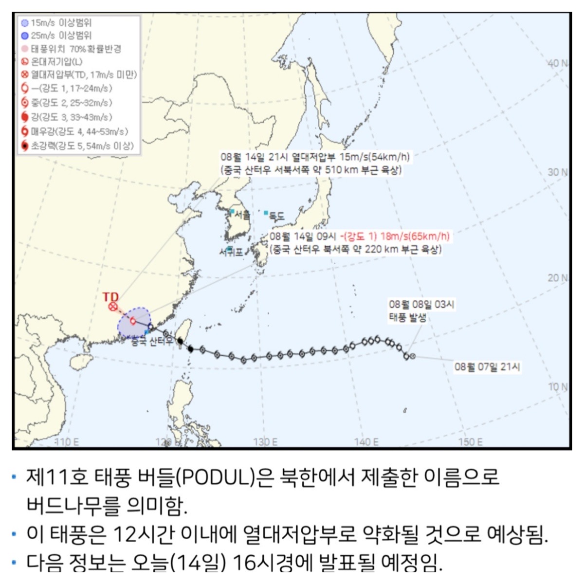 다음 5일간 경로 예측 신뢰도가 높으므로, 이 기간 내 진로가 확정적으로 잡히기 전까지는 매일 업데이트를 확인해야 합니다.
